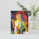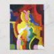 A fine art postcard with the painting by the German Expressionist artist August Macke, Coloured Forms III (1913). A multi-coloured geometric abstract influenced by cubism in the colours of red, yellow, and blue.