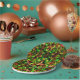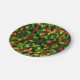 Coloured green, yellow to red with feathers. paper plate