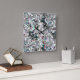 Squared pieces of colourful abstract drawings with some degree of gradient and colour blend that, when observed at long distance, causes a perception of bright coloured similar to CD or DVD, which is further improved with the presence of silver grey and whitish stain.