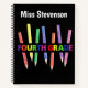 Start out the new school year with this Fourth Grade notebook which can both be used by teachers and students. The design consists of 7 different coloured pencils at different angles next to each other with the word "Fourth Grade" across them. This note book can be personalised by changing the name on it, and would make a great back-to-school gift.