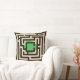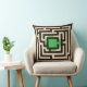 A geometric retro design based on black labyrinths with a centred colourful spot. Note that each side of the pillow has a different coloured spot, green and orange, by flipping it you can vary!