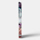 The design showcases an exquisite array of 3D flowers, featuring a rich palette of turquoise, purple, blue, and salmon chrysanthemums. The glass texture adds depth and authenticity, enhancing the visual appeal. A stunning diamond frame beckons for personalisation, inviting you to add your name and make this case truly your own.