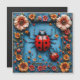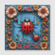 Colourful ladybugs that are sitting on a blue surface with flowers