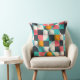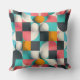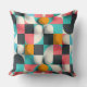 A dynamic 3D geometric pattern throw pillow featuring smooth spheres and flat shapes in orange, teal, pink, white, and charcoal. The mix of 2D and 3D elements creates depth, energy, and a playful retro-futuristic vibe. Perfect for modern art lovers, designers, and those who enjoy bold, tactile abstract designs.