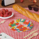 Colourful 80s Geometric Abstract Modern Pattern. Cheerful patchwork and dot design in bright colours with a joyful 1980s vibe and a retro modern aesthetic. Fun and full of bright colour. 20th-century contemporary modern art design. By Kierkegaard Design Studio.