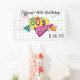 80's Party Banner features a bright colourful typography of "80's Party''. These designs include elements of bright coloured blue, orange, and pink, yellow, purple, a geometric grid, shapes, and graphics all inspired by the 80's. Includes a template to personally customise with event and date.