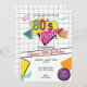 80's Party Invitation features a bright colourful typography of "80's Party''. These designs include elements of bright coloured blue, orange, and pink, yellow, purple, a geometric grid, shapes, and graphics all inspired by the 80's. Includes a template for personal customisation.