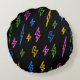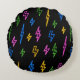 Colourful 80's Retro Neon Lightning Pattern Round Cushion