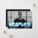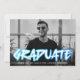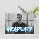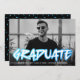 Trendy graduation announcement featuring the graduate's horizontal photo with "Graduate" displayed in blue 90's-style lettering. Personalise the front of the bold graduation announcements by adding the graduate's name, school, and graduation year. The back of the announcement features a blue gradient confetti pattern.