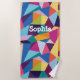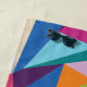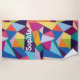 This beach towel features an abstract bold and colourful design of geometric shapes. Customise your design by easily adding a name, featured in white font.