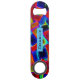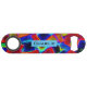 Bright and colourful bold abstract pattern of neon bokeh blocks on personalised bottle opener.