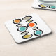 Theses fabulous mid century modern coasters feature two sets of abstract hanging circles in the colours of turquoise blue, two shades of orange, cream, avocado green, gold, and black. This will make a colourful addition to your coffee or side table!
