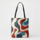 This stylish tote bag features a vibrant and artistic abstract design. The design includes an array of irregular shapes in various colours, including red, blue, white, and orange, scattered across the surface of the bag, creating a visually dynamic and eye-catching pattern. The black handles provide a comfortable and sturdy grip, making it ideal for everyday use, shopping, or as a thoughtful gift for friends and family.