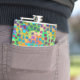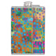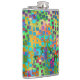 A smattering of tiny squares in different sizes are sprinkled over a watercolor-textured background. I created this abstract art piece digitally. Features greens, yellows, orange, hot pink, blue and purple.