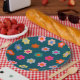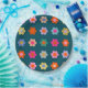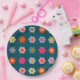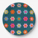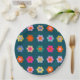 Colourful Abstract Flowers Navy Blue Retro Floral Paper Plate