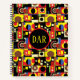 Circles, squares, and rectangles in red, yellow, blue, and black come together to form a thoroughly modern and abstract work of art on this noteboo. A black circle bordered in red has space for your initials or monogram.