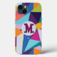 This iPhone case features an abstract bold and colourful design of geometric shapes. Customise your design by easily adding an initial, featured in magenta font (can be changed to any colour of your choice).