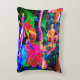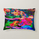 A bright and colourful abstract iris design fills the space on both sides of this floral pillow.