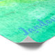 A print that depicts a beautiful abstract watercolor painting of blue, green, and peach tones.