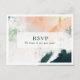 This colourful abstract menu choice RSVP card is perfect for your unique modern boho wedding. Hand-painted with textured brush marks of dark emerald green, peach, and mustard, all overlayed with a minimalist transparent square, it's sure to give your occasion a simple yet rustic bohemian feel.