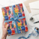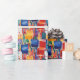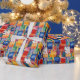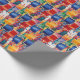 Splatter painted squares and rectangles in bright blue, red, orange, and yellow make a cute and fun all-occasion wrapping paper for kids or grownups.