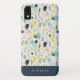 Pretty colourful pastel foliage pattern in trendy shades of pink, yellow, blue and green, personalised with name, iPhone case.
