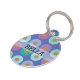 Pretty pet ID tag in bright colours with a colourful circle pattern in purple, pink, teal, and blue background. Add pet name and your information on the back.