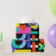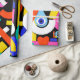 Colourful abstract pattern with word love inside,eyes,tears,colour blocks. Pattern illustration with bright colour-blocking shapes. Trendy colourful pop art geometric pattern with bold shapes on black.