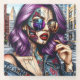 Colourful Abstract Pretty Lady with Purple Hair Glass Coaster