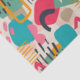 Colourful shapes and swirly lines grunge pattern with a white background.