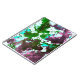 This colourful abstract design features a splatter paint pattern in shades of deep eggplant purple and bright kelly green with hints of aqua blue.