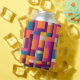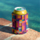 Can cooler with a colourful abstract background. Bold and exciting colours - pink, blue, orange and more.