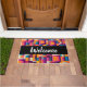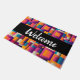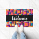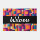 Welcome door mat with a colourful abstract background. Bold and exciting colours - pink, blue, orange and more.