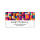 Address labels with a colourful abstract background. Bold and exciting colours - pink, blue, orange and more.