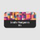 Name tag with a colourful abstract background. Bold and exciting colours - pink, blue, orange and more.