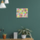 An abstract illustration with large and small squares and rectangles with intersecting lines. This creative design has contrasting pastels and brights in the colours of cream, rose pink, lime green, light brown and bright blue.