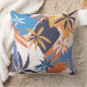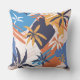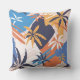 Abstract Summer palm tree pattern, throw pillow. Bright colourful shades of blue, orange and pink.
