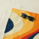 Abstract illustration of colourful retro style swirl design in beige, orange, yellow, red and dark blue colours