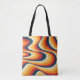 Abstract illustration of colourful retro style swirl design in beige, orange, yellow, red and dark blue colours