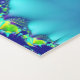 Abstract fractal pattern in vibrant colours: blue, cyan, neon green, and purple.
