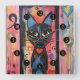 Colourful Abstract Yellow Eyed Cat Square Wall Clock