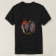 I give wanted to give this a 4 instead of a 5 because these Basic DARK T0shirts run unexpectedly SLIM or Narrow. Which is great if you do not have a potbelly, but I have a paunch. It isn't the shirt's fault that I've got a beer belly. The design and shirt itself is a quality cotton shirt. The color is more of a deep purple, but still a very pretty color. The Basic DARK T-shirts run a bit SLIMMER than the Basic Ts. The neck is a fraction narrower (or seems to be narrower) also. I'm a paunchy middle-aged woman and my neck is 12 inches (31cm) thick and the neckline fell about the same as in the photo of the man, and I had the desire to tug it a bit. So if you're a thick necked man or like loose shirts, be aware these are slimmer shirts. Once I get rid of my lockdown paunch it'll look great. The shirt washed well in cold water with no apparent bleeding. We don't have a dryer, so it hung dry. Did not shrink. Love the colors and the design. The design looks smaller on my shirt than it does on the model on-line. But still, it looks good on the shirt. The printing looks as it does on the model, just the size seems fractionally smaller. Washed garment in cold water, hung dry and design appeared unaffected.