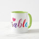 Are you looking for a fun and colourful coffee mug for someone you love? How about this cute 'Adorable' colourful cursive letters word design coffee mug? A cute hot pink heart can also be seen above the word 'Adorable'.