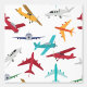 A colourful hand drawn aeroplane pattern. This design features different types of colourful aeroplanes flying around. A great design for anyone who loves planes, aviation and cute aeroplanes. An ideal gift or kids bedroom decor design.
