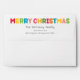 Capture the joy and magic of the holiday season with this unique and festive, colourful and bright Merry Christmas envelope. Its simple yet fun design features a rainbow colour palette of red, green, yellow, blue, orange, and pink, creating a vibrant and cheerful atmosphere. The creative and minimalist approach, with bold typography, adds an original and trendy touch. Perfect for children and kids at heart, this design embraces a light and casual feel, spreading happiness with its cheerful wording. Celebrate December in style with this delightful greeting!