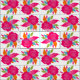 © Socialite Designs. Beautiful vibrant pink rose and colourful petals pattern design fabric for your crafts or home decor.