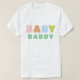 Celebrate the baby and parents to be at a shower with colourful and fun "baby daddy" shirt with colours of pink, orange, green, mint, and sky blue. The father to be can wear this cute t-shirt for photo shoots, at a couple's shower and for any occassion he or the baby mama dictates.