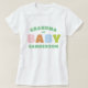 Celebrate the baby to be at a shower with colourful and fun "grandma of" shirt with colours of pink, orange, green, mint, and sky blue. A fun surprise announcement gift for the grandmother to be or for the proud granny to wear at a baby shower (so everyone knows who the matriarch is) the mint green text is easily personalised with her chosen moniker and the last name of the little babe on the way.