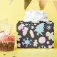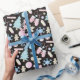 Presenting our Modern Holiday Delights Christmas Wrapping Paper, a perfect blend of festive charm and contemporary design. The wrapping paper features a Super cute black Christmas background, setting the stage for a vibrant holiday scene. Adorning this sophisticated backdrop are a variety of delightful elements, including green Christmas trees, red and white mittens, cheerful red bows, tempting candy, adorable gingerbread men, and whimsical blue and purple snowflakes.