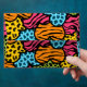 Modern and trendy animal pattern with cute zebra, tiger, giraffe and leopard hearts. Elegant and girly gift.